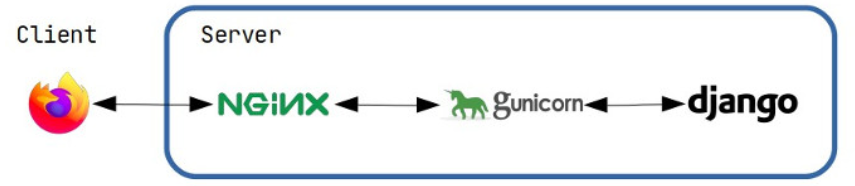 Gunicorn (Green Unicorn) é um servidor de aplicações WSGI para aplicações Python. Ele executa o código Python da sua aplicação Django/Flask. Fica escutando requisições HTTP e repassa para o seu app Python.O Nginx recebe o tráfego, decide pra onde vai a solicitação (se for arquivos estáticos entrega direto sem precisar chamar o gunicorn) e o gunicorn executa o app. O Gunicorn carrega seu app, recebe requisições HTTP, executa o código da aplicação e gera as respostas. Só responde a quem se conectar a ele (normalmente o Nginx, que está na frente, recebendo as requisições do cliente).